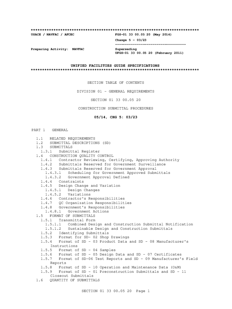 ************************************************************************** USACE / NAVFAC / AFCECPreparing Activity:FGS01 33 00.05 20 (May 2014)NAVFACChange 5 03/23 Superseding UFGS01 33 00.05 20