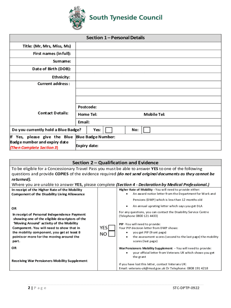 Disabled Persons Concessionary Travel Pass Application Form Disabled Concessionary Travel passes are awarded to people of farepaying age who qualify under any of the seven categories of disability