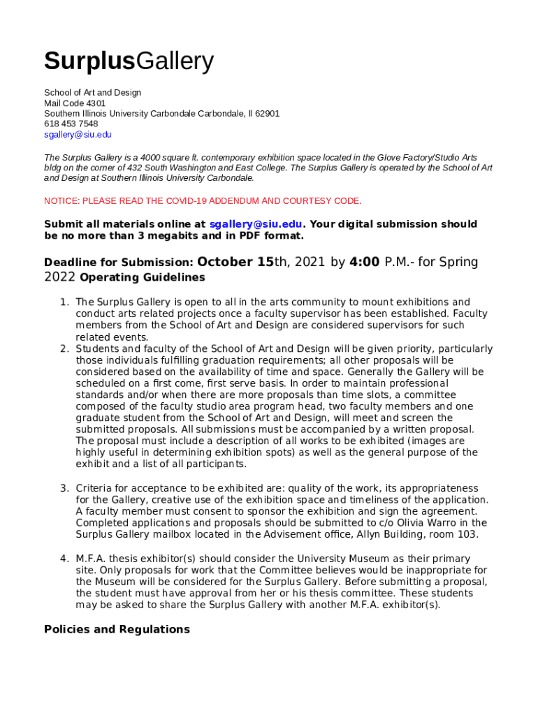 Instructions for the form Surplus Gallery at the Glove Factory - SIU Academic Programs