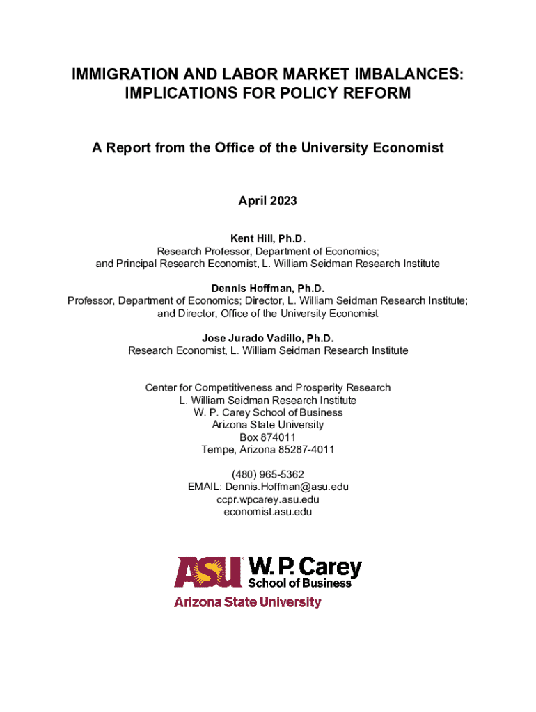 IMMIGRATION AND LABOR MARKET IMBALANCES: IMPLICATIONS FOR POLICY REFORM A Report from the Office of the University Economist April 2023 Kent Hill, Ph.D. Research Professor, Department of Economics;