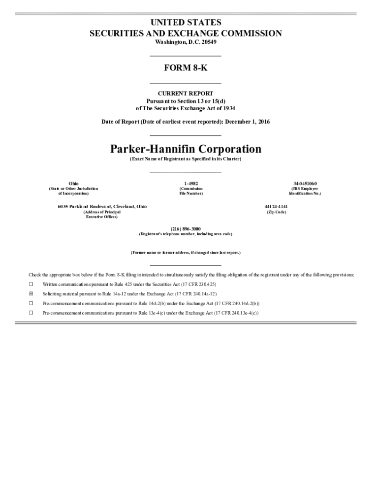 This document outlines the acquisition of CLARCOR Inc. by Parker-Hannifin Corporation. It details significant aspects of the acquisition, including the financial implications, strategic fit, expected synergies, and the organizational changes resulting from the merger. It also emphasizes the importance of regulatory approvals and the impact on shareholders.