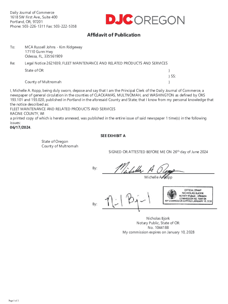 Get the free Affidavit of Publication