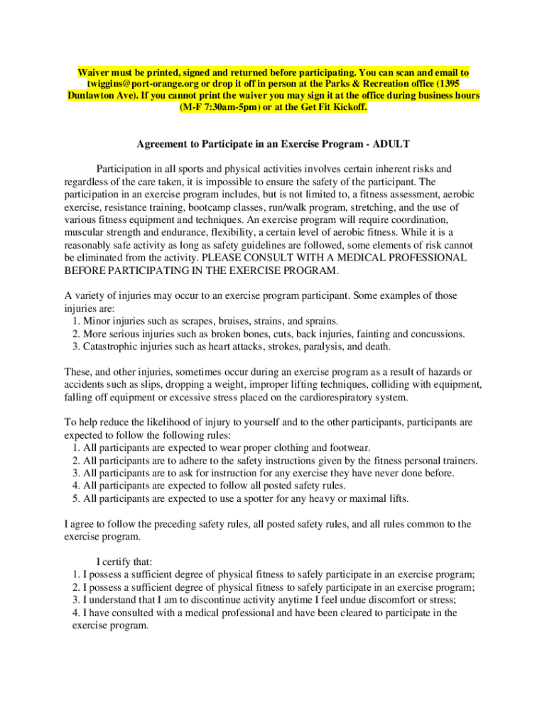 Get the free Agreement to Participate in an Exercise Program - ADULT ...
