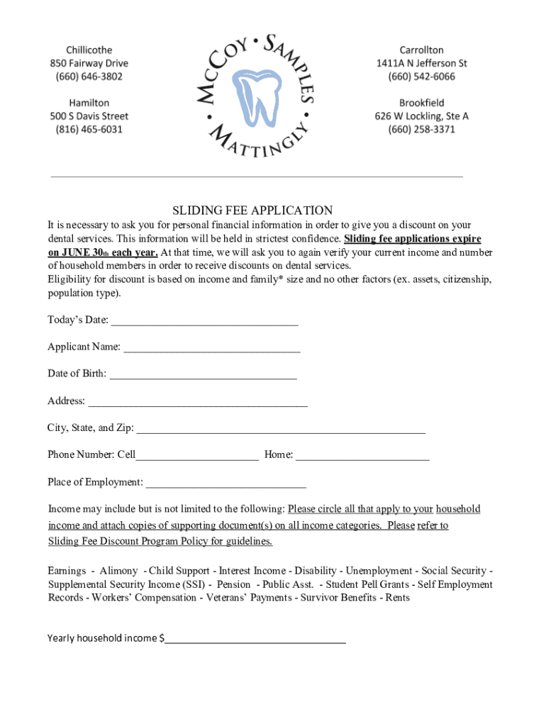 Individuals or families seeking services that have a sliding fee scale based on income are typically required to file a sliding fee application.