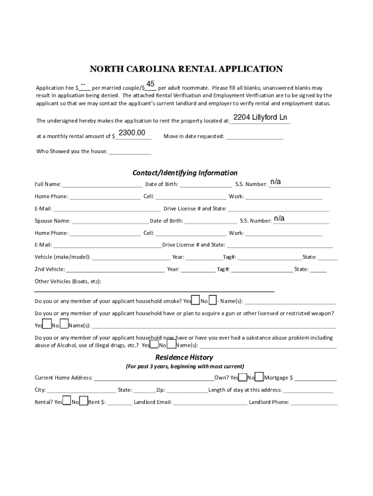 Any individual seeking to rent a property in North Carolina is typically required to fill out a rental application.