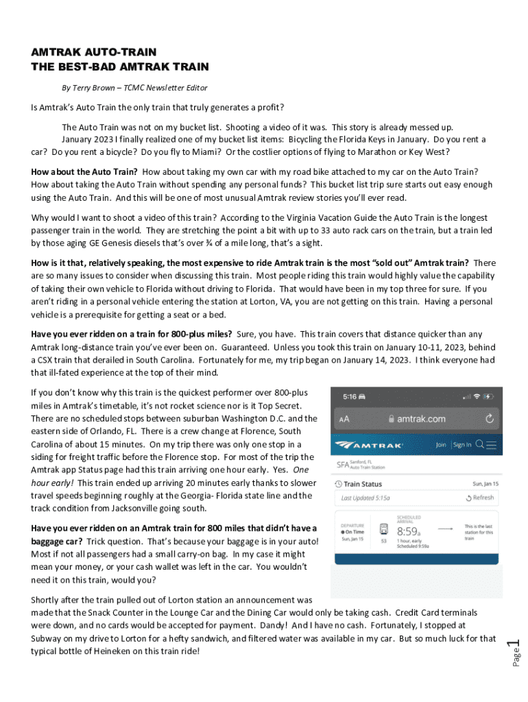 AMTRAK AUTOTRAIN THE BESTBAD AMTRAK TRAIN By Terry Brown TCMC Newsletter EditorIs Amtraks Auto Train the only train that truly generates a profit? The Auto Train was not on my bucket list. Shooting