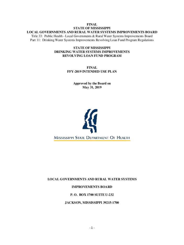 FINAL STATE OF MISSISSIPPI LOCAL GOVERNMENTS AND RURAL WATER SYSTEMS IMPROVEMENTS BOARD Title 33: Public Health Local Governments & Rural Water Systems Improvements Board Part 11: Drinking Water Systems