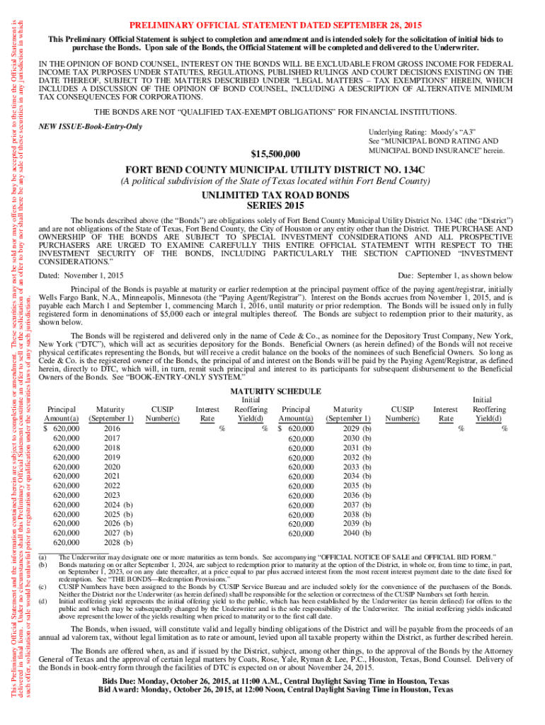 Fill out your preliminary official statement online with pdfFiller!