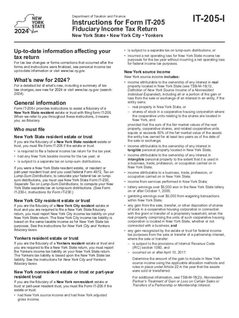 Department of Taxation and FinanceInstructions for Form IT205 Fiduciary Income Tax ReturnIT205INew York State New York City YonkersUptodate information affecting your tax returnFor tax law changes
