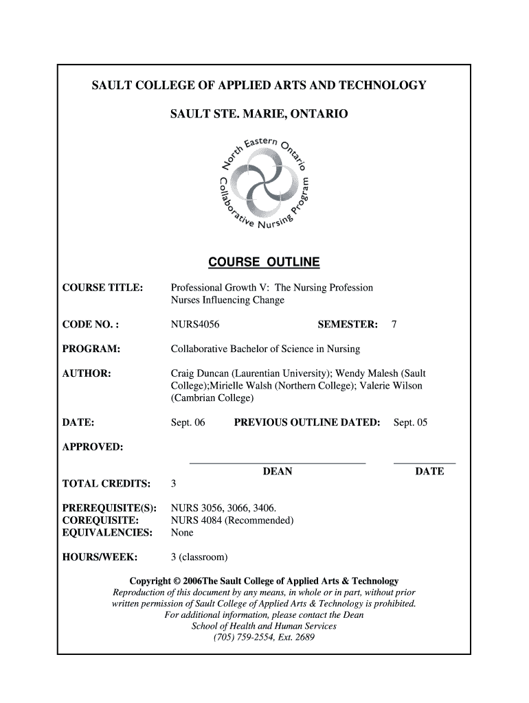 Get the free MARIE, ONTARIO COURSE OUTLINE COURSE TITLE: Professional Growth V: The Nursing Profe...