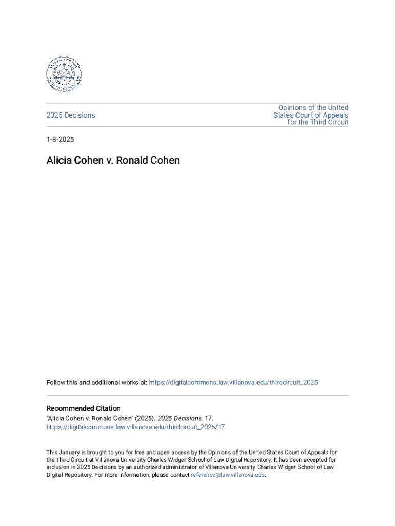 2025 DecisionsOpinions of the United States Court of Appeals for the Third Circuit182025Alicia Cohen v. Ronald CohenFollow this and additional works at: https://digitalcommons.law.villanova.edu/thirdcircuit_2025Recommended