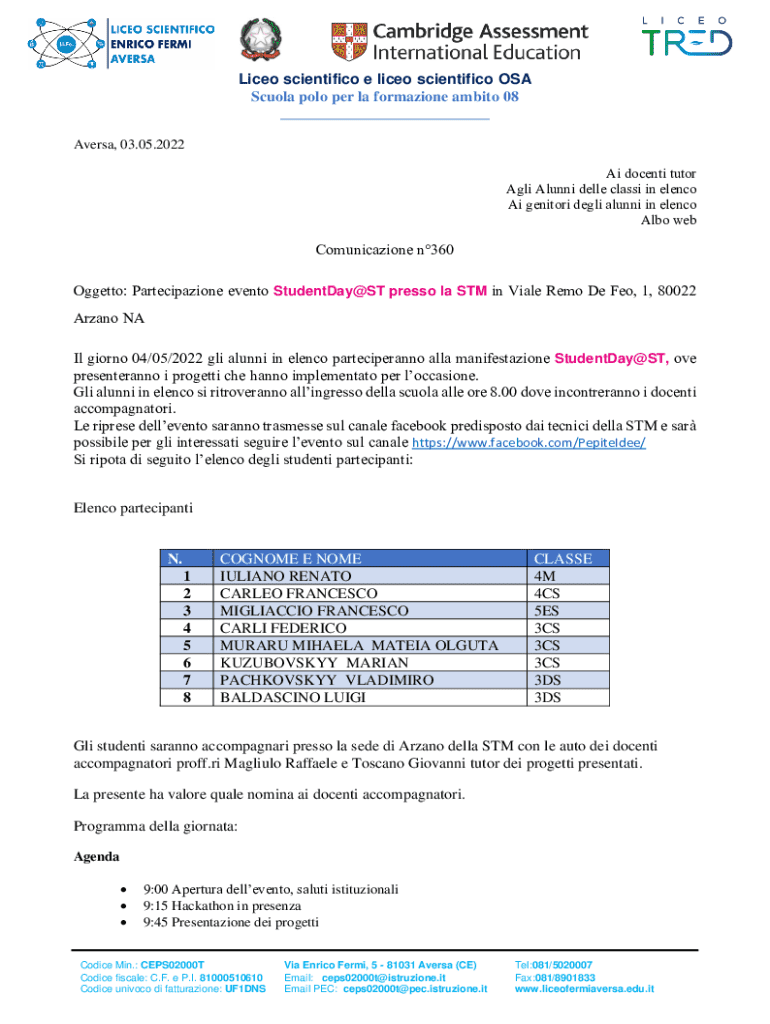 Liceo scientifico e liceo scientifico OSA Scuola polo per la formazione ambito 08 ___ Aversa, 03.05.2022 Ai docenti tutor Agli Alunni delle classi in elenco Ai genitori degli alunni in elenco Albo