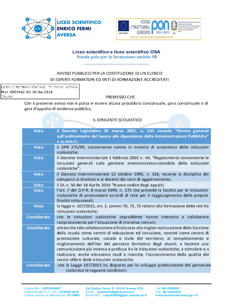 Liceo scientifico e liceo scientifico OSA Scuola polo per la formazione ambito 08 ___ AVVISO PUBBLICO PER LA COSTITUZIONE DI UN ELENCO DI ESPERTI FORMATORI ED ENTI DI FORMAZIONE ACCREDITATIPREMESSO