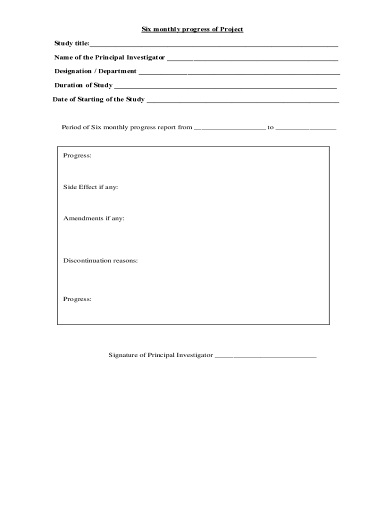 Get the free Six Monthly Progress Report