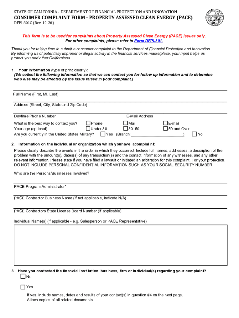 Gua de autoayuda \"Pro Per\" para completar: Queja de PACE del Departamento de Proteccin Financiera e Innovacin de California Uso de esta gua: Esta gua est destinada a personas que deseen presentar