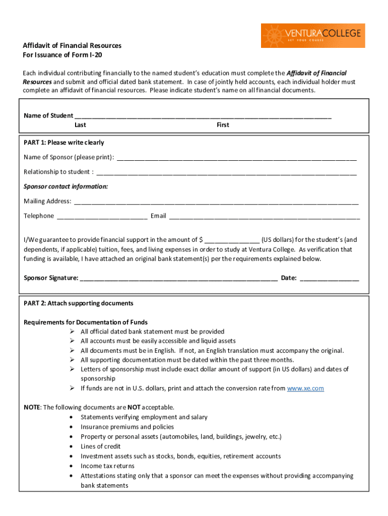 Get the free Affidavit of Financial Resources