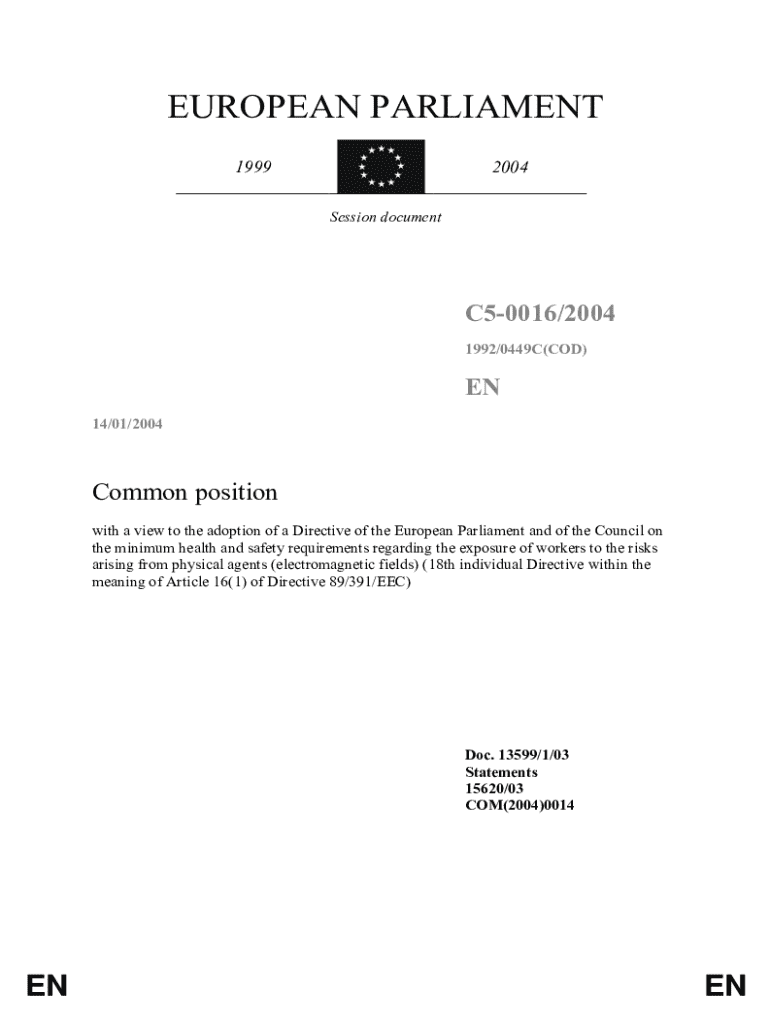 EUROPEAN PARLIAMENT 1999 2004Session documentC50016/2004 1992/0449C(COD)EN 14/01/2004Common position with a view to the adoption of a Directive of the European Parliament and of the Council on the