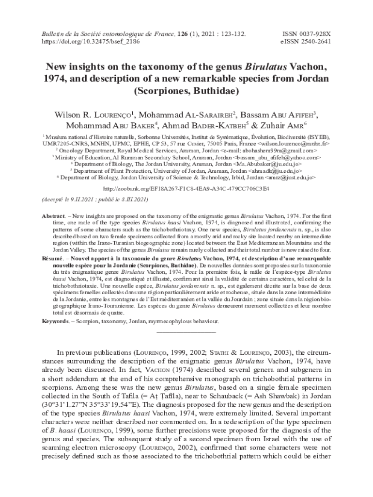 Bulletin de la Socit entomologique de France, 126 (1), 2021 : 123132. https://doi.org/10.32475/bsef_2186ISSN 0037928X eISSN 25402641New insights on the taxonomy of the genus Birulatus Vachon, 1974,