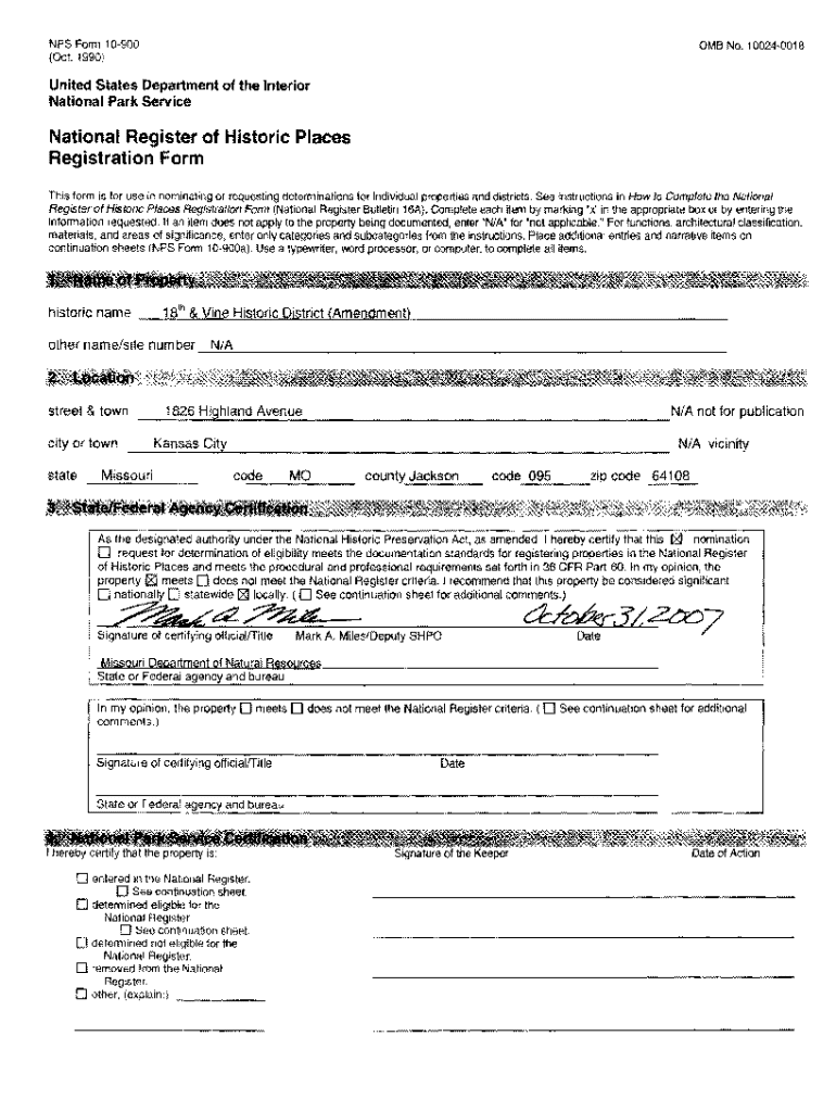 This form is for use in nominating or requesting determinations for individual properties and districts in the National Register of Historic Places. It includes guidelines for submitting documentation for properties, including their historical significance, architectural classification, and related resources.