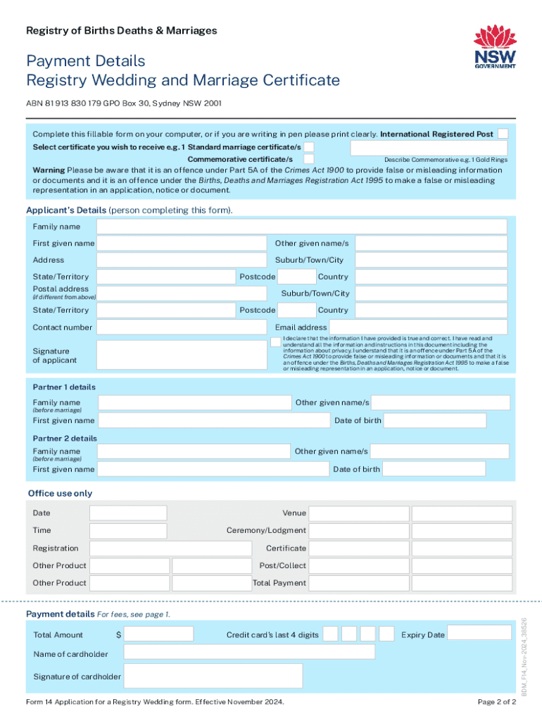 Get the free Application for a registry wedding. Application form for a registry wedding