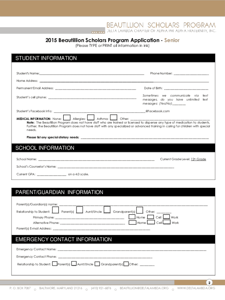 Fill out your 2015 beautillion scholars program online with pdfFiller!