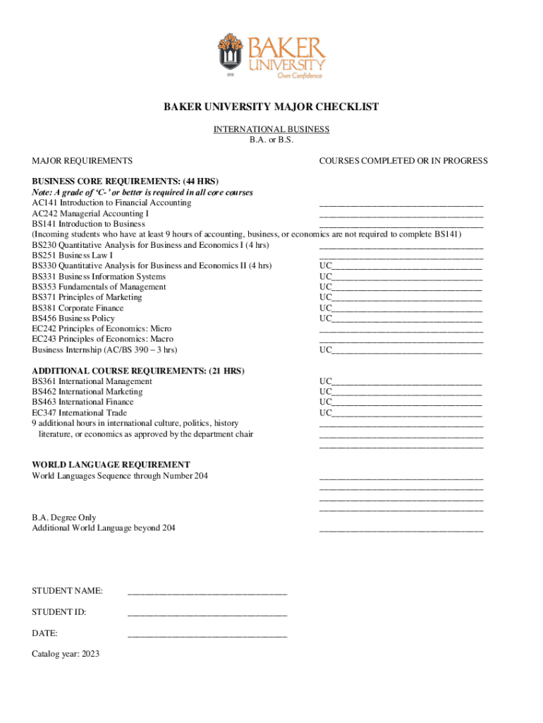 Get the free Baker University Major Checklist