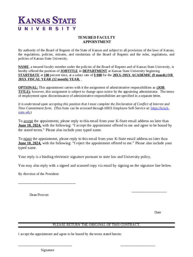 How to fill out Tenured Faculty Appointment