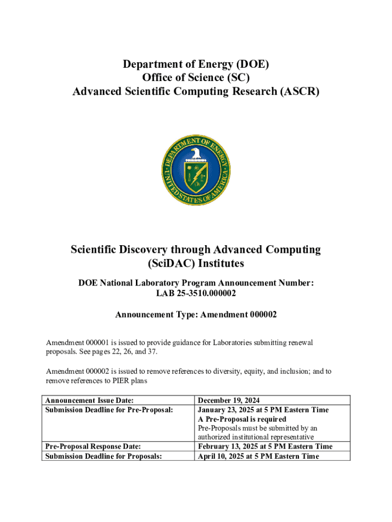 Department of Energy (DOE) Office of Science (SC) Advanced Scientific Computing Research (ASCR)Scientific Discovery through Advanced Computing (SciDAC) Institutes DOE National Laboratory Program Announcement