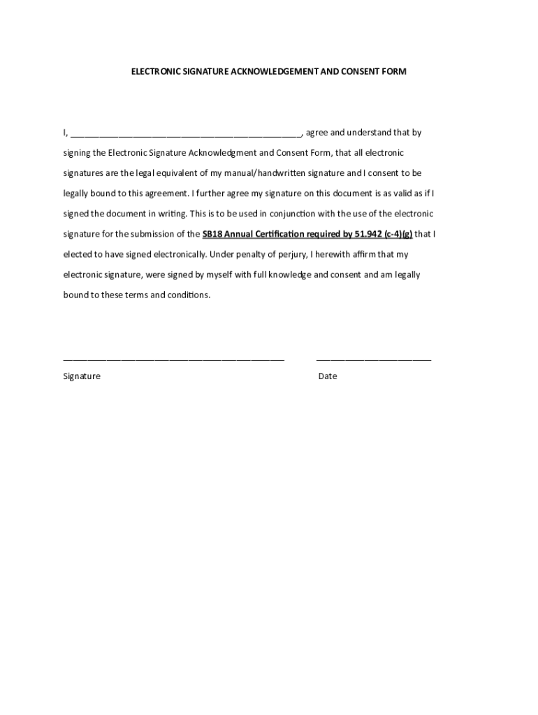 Get the free Electronic Signature Acknowledgment and Consent Form SB18 ...