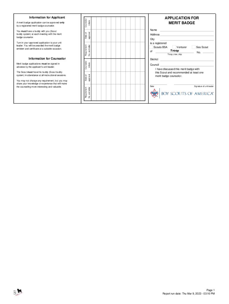 Get the free Application for Merit Badge