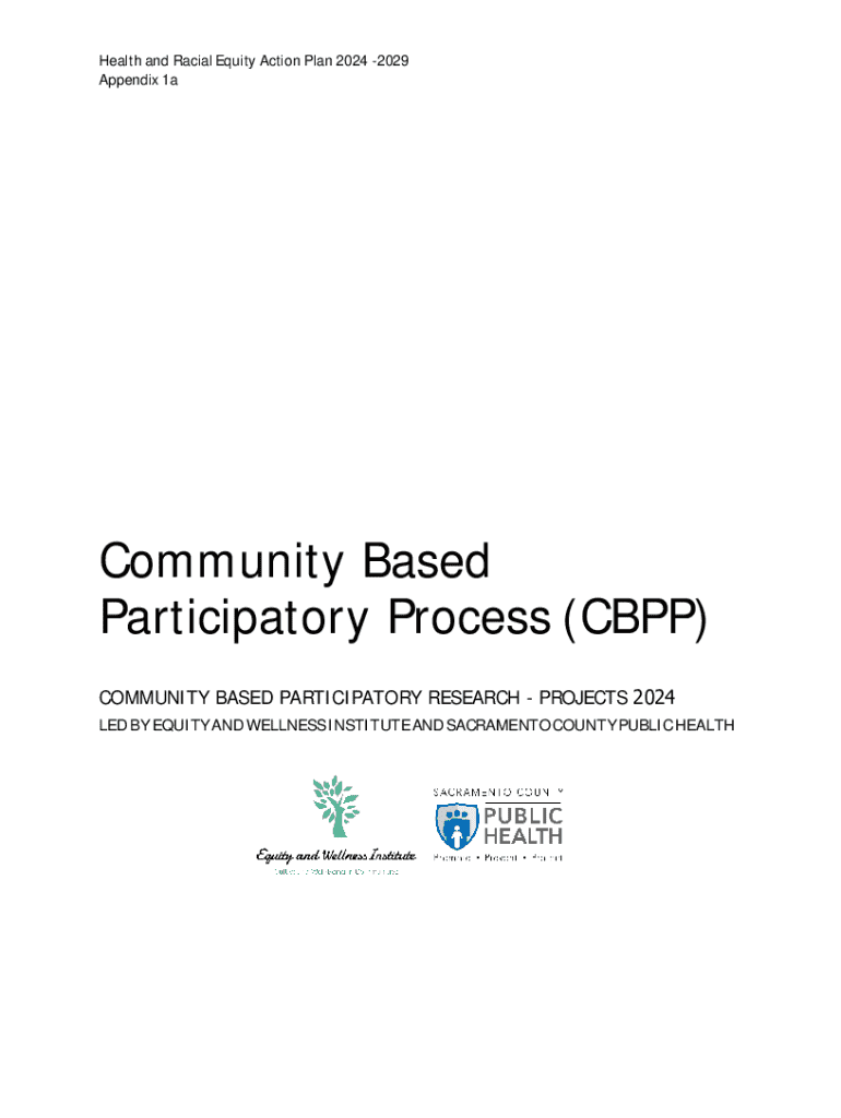 Health and Racial Equity Action Plan 2024 2029 Appendix 1aCommunity Based Participatory Process (CBPP) COMMUNITY BASED PARTICIPATORY RESEARCH PROJECTS 2024 LED BY EQUITY AND WELLNESS INSTITUTE AND
