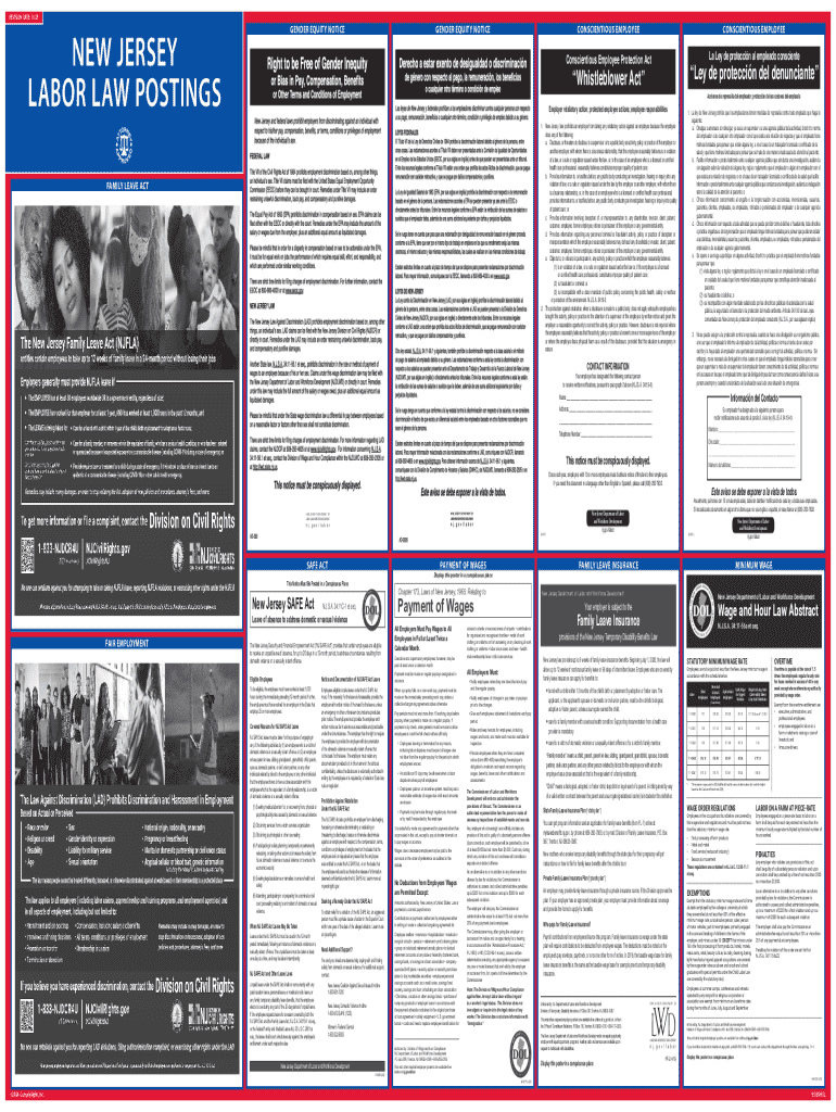 REVISION DATE: 11/23GENDER EQUITY NOTICENEW JERSEY LABOR LAW POSTINGSGENDER EQUITY NOTICECONSCIENTIOUS EMPLOYEECONSCIENTIOUS EMPLOYEEConscientious Employee Protection ActLa Ley de proteccin al empleado