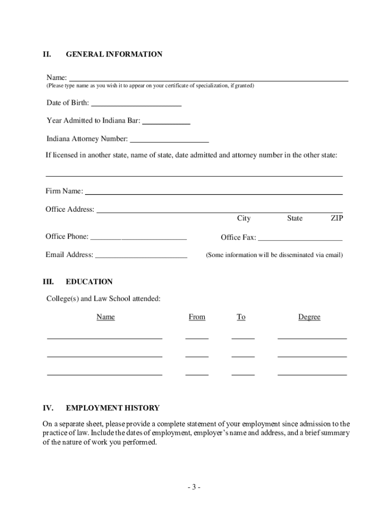 TRUST & ESTATE SPECIALTY BOARD (TESB OR BOARD) APPLICATION FOR INITIAL CERTIFICATION IN INDIANA TRUST & ESTATE LAW Mail Completed Application to: Trust & Estate Specialty Board Indiana State Bar Association