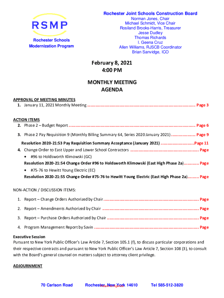 Get the free Rochester Joint Schools Construction Board Monthly Meeting Agenda