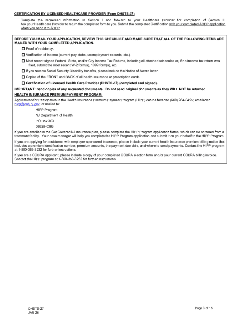 New Jersey Department of Health AIDS Drug Distribution Program (ADDP) and Health Insurance Premium Payment (HIPP) Program PO Box 722 Trenton, NJ 086250722INSTRUCTIONS FOR COMPLETING THE APPLICATION