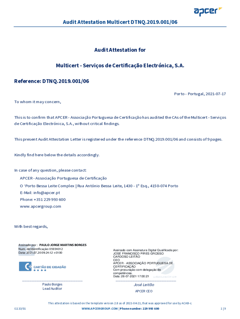 Get the free Audit Attestation Multicert Dtnq.2019.001/06