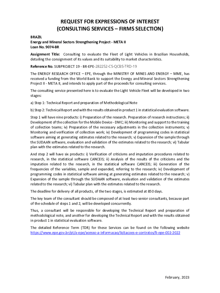 REQUEST FOR EXPRESSIONS OF INTEREST (CONSULTING SERVICES FIRMS SELECTION) BRAZIL Energy and Mineral Sectors Strengthening Project META II Loan No. 9074BR Assignment Title: Consulting to evaluate the