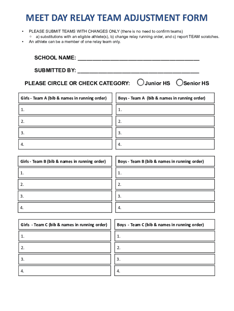 Get the free Meet Day Relay Team Adjustment Form