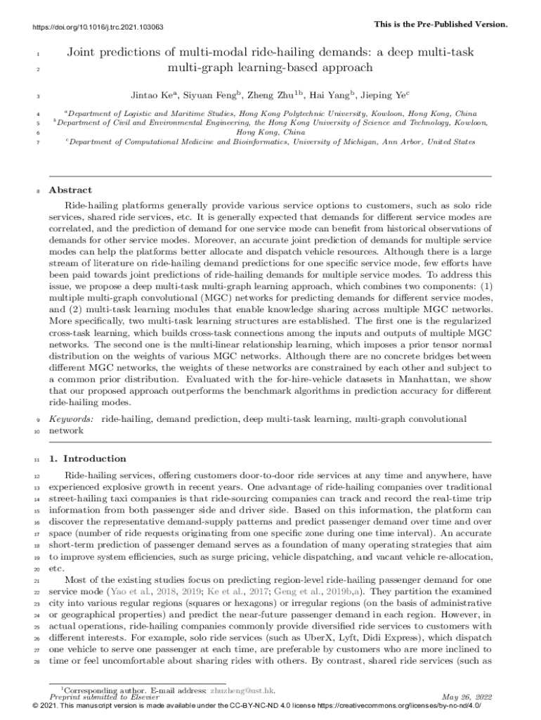 Get the free Joint predictions of multi-modal ride-hailing demands - ira lib polyu edu