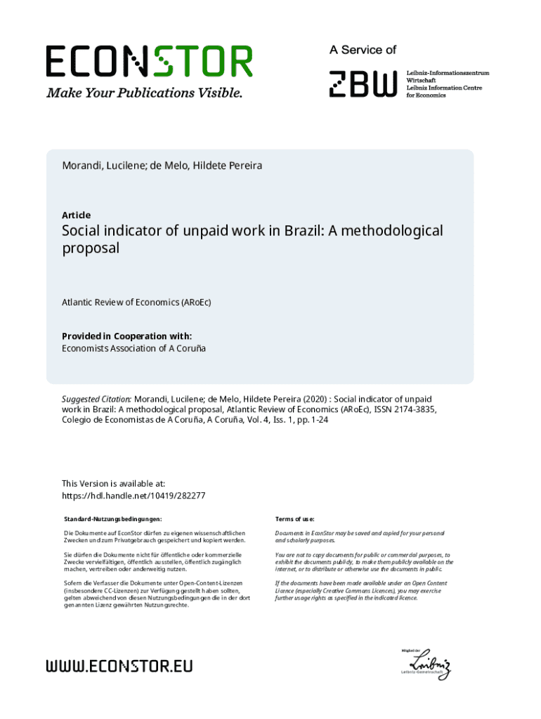 Morandi, Lucilene; de Melo, Hildete PereiraArticleSocial indicator of unpaid work in Brazil: A methodological proposalAtlantic Review of Economics (ARoEc) Provided in Cooperation with: Economists