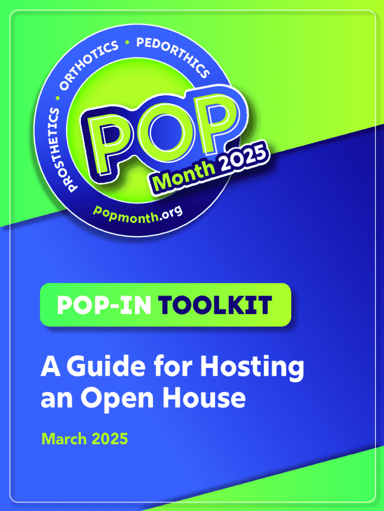 This toolkit provides comprehensive resources and best practices for hosting a POP-In open house event aimed at students and community members to explore careers in prosthetics, orthotics, and pedorthics (POP). It includes planning guidelines, sample invitations, event agendas, and promotional materials to ensure a successful event.