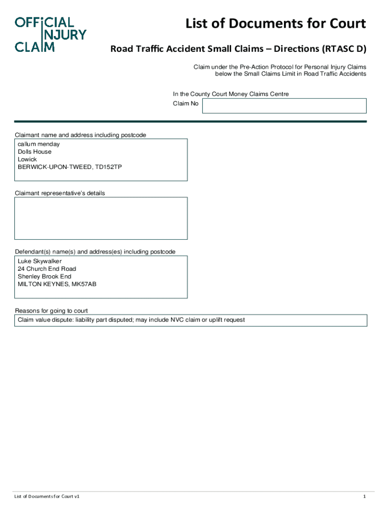 Get the free List of Documents for Court