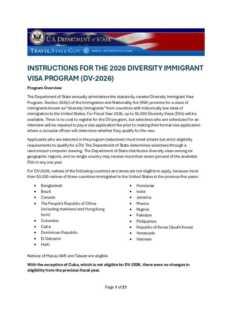 Get the free Instructions for the 2026 Diversity Immigrant Visa Program (dv-2026)