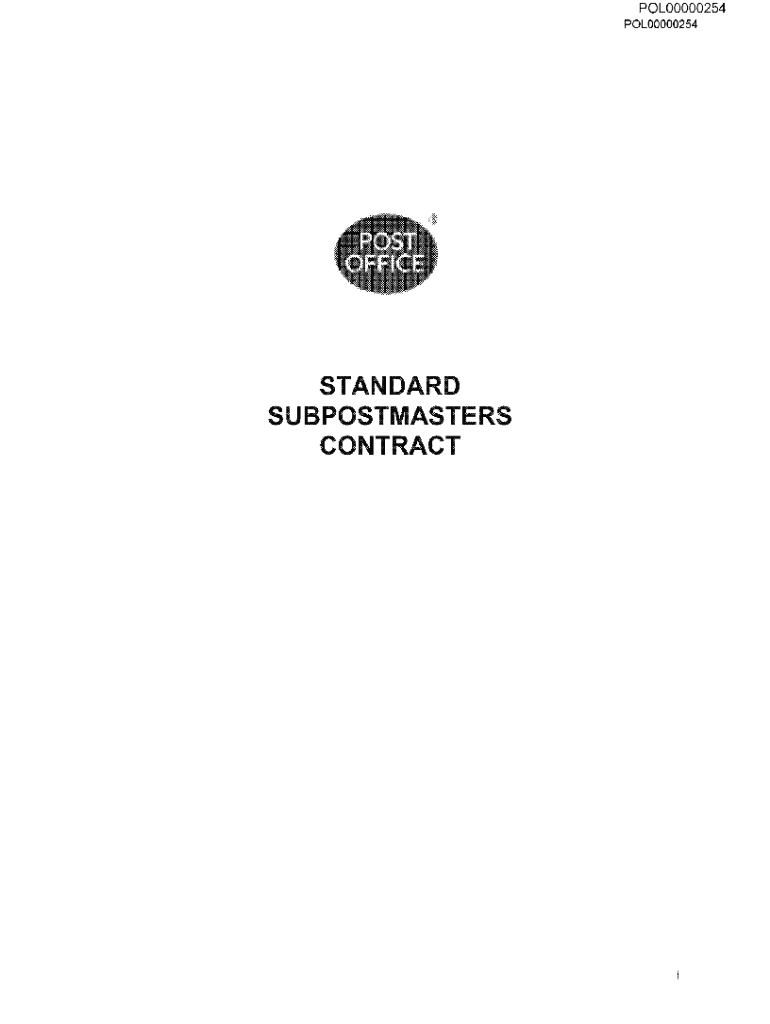POL00000254 POL00000254\" rPOL00000254 POL00000254CONTENTSPOL00000254 POL00000254POST OFFICE LIMITED SECTION 1 SUB POSTMASTERS CONTRACT AND STATUS CONTRACT 1The contract is a contract for services