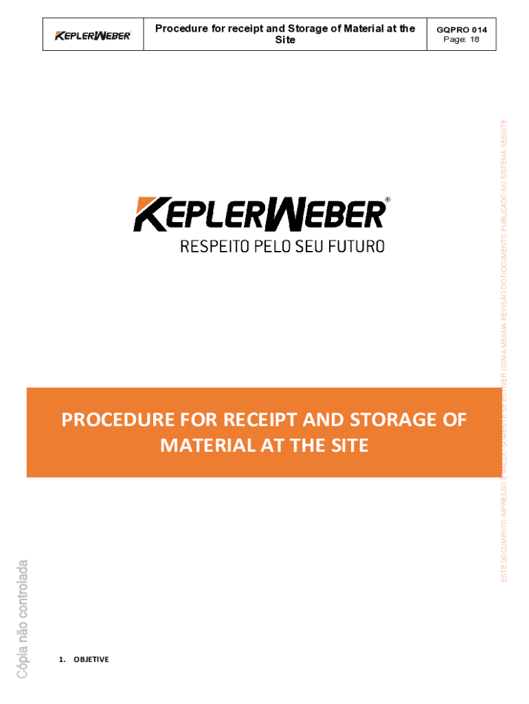 Este documento fornece instruções para o recebimento e armazenamento de materiais no local, garantindo a qualidade, durabilidade e vida útil dos equipamentos e materiais fornecidos pela Kepler Weber. Inclui diretrizes para clientes nacionais e internacionais, além de recomendações para armazenamento em condições específicas.