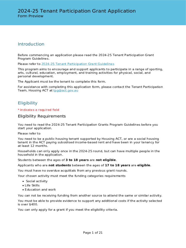 Get the free 2024-25 Tenant Participation Grant Application