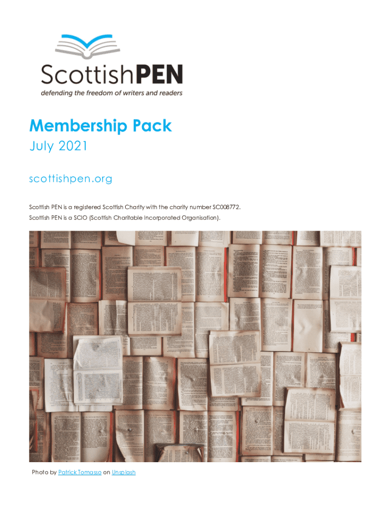 Membership Pack July 2021 scottishpen.org Scottish PEN is a registered Scottish Charity with the charity number SC008772. Scottish PEN is a SCIO (Scottish Charitable Incorporated Organisation).Photo