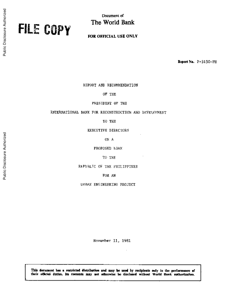 Public Disclosure AuthorizedDocument ofThe World Bank FOR OFFICIAL USE ONLYPublic Disclosure AuthorizedReportNo. P3150PHREPORT AND RECOMMENDATION OF THE PRESIDENT OF THE INTERNATIONAL BANK FOR RECONSTRUCTION
