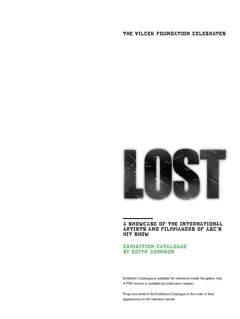Exhibition Catalogue showcasing the international artists and filmmakers of ABC’s hit show, detailing props and items from the series.