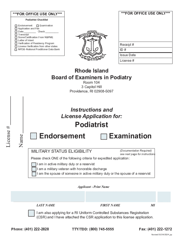 Get the free Podiatrist License Application - health ri
